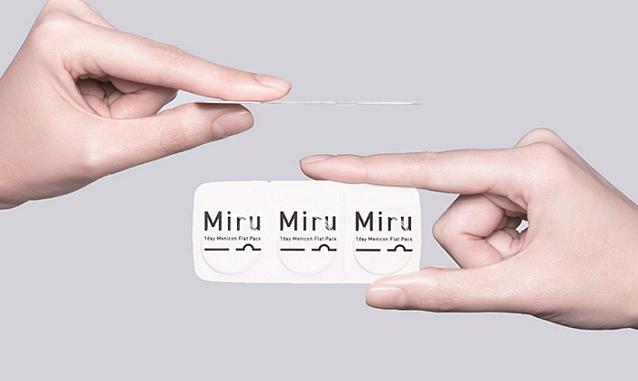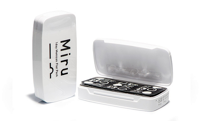 - Плоские упаковки Miru 1day Flat Pack легко помещаются в кармане или кошельке, открываются плавно и без усилий, гарантируя хорошее начало нового дня.