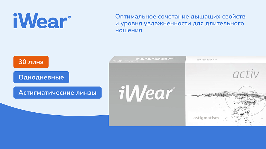 Контактные линзы iWear Activ for Astigmatism (30 линз) в наличии по выгодной цене в интернет-магазине и салонах оптики «Линзмастер». Купить Контактные линзы iWear Activ for Astigmatism (30 линз) с доставкой по всей России.