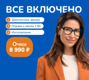 *Сроки проведения рекламной акции: с 4 августа до 30 сентября 2025 г. . Рекламная акция действует во всех подразделениях «Линзмастер», кроме интернет-магазина. Скидка не суммируется с другими рекламными, купонными или дисконтными предложениями «Линзмастер».