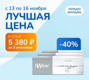 При покупке iWear Комплект Activ (30 линз) 3 упаковки* - Скидка 38%