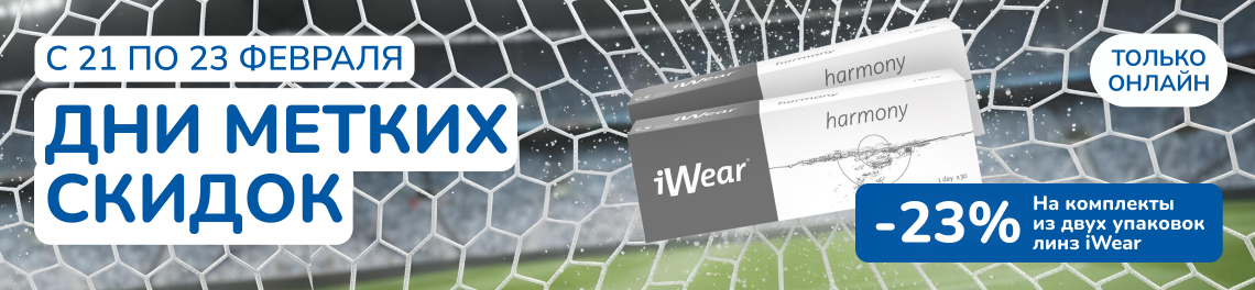 При покупке комплекта, состоящего из двух упаковок контактных линз iWear скидка 23%